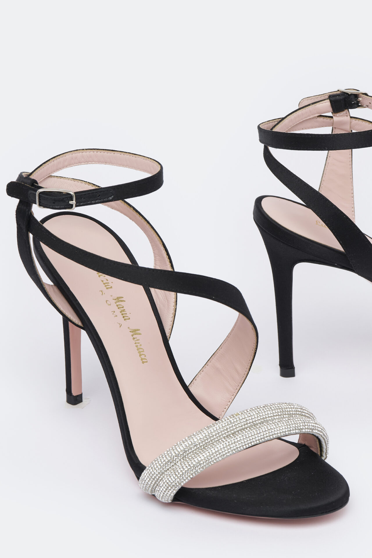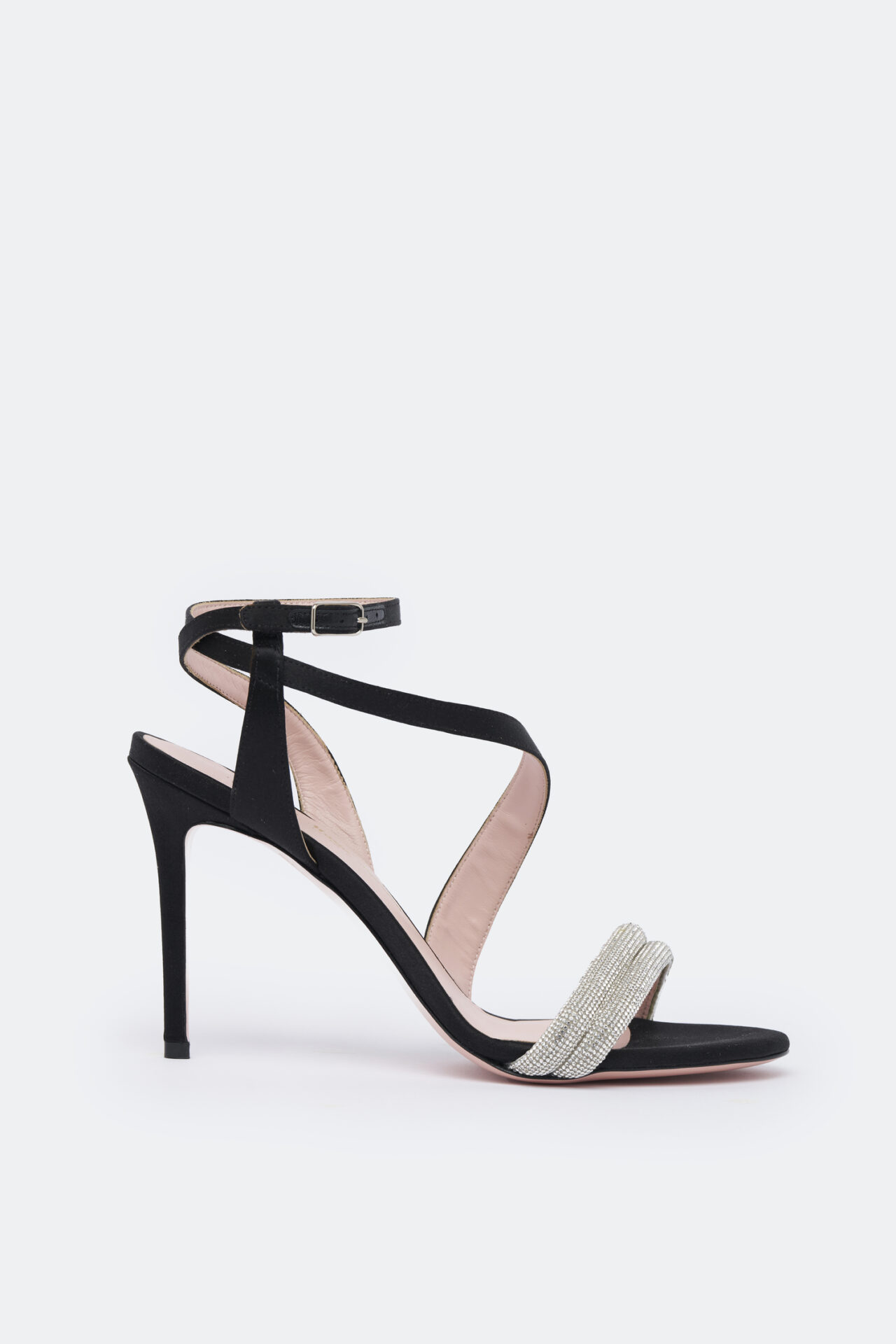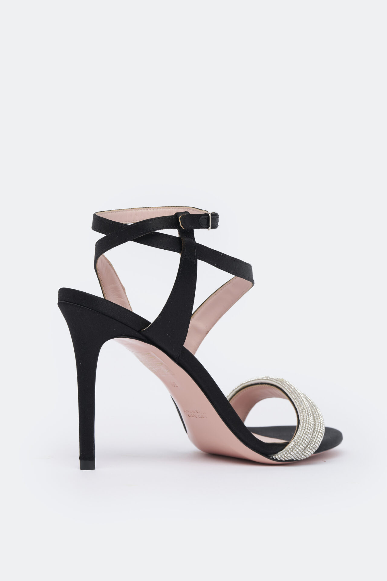 صندل من الساتان الأسود مرصع بأحجار الراين . كعب ٩٥ مليمتر