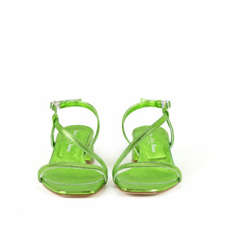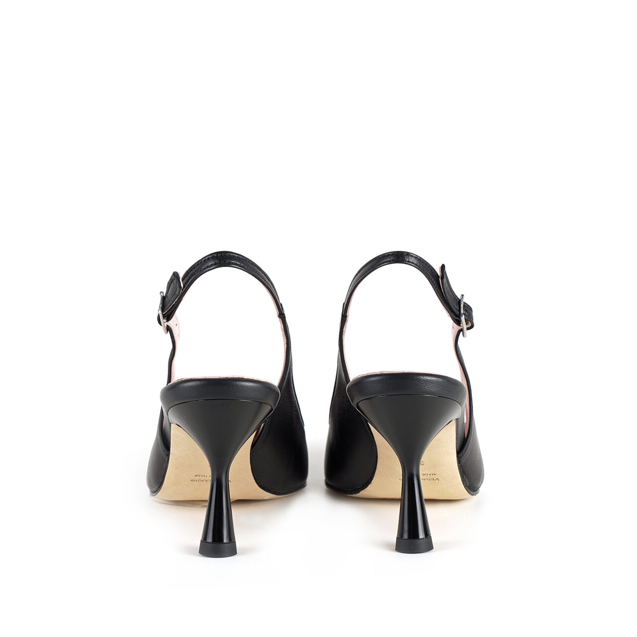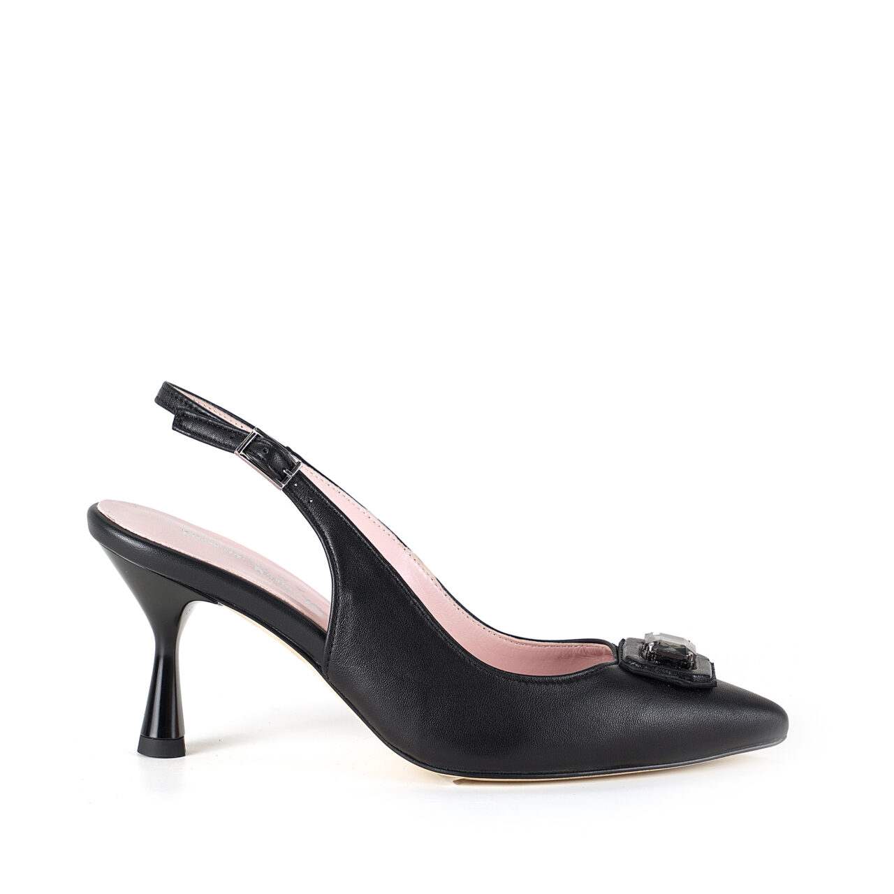 slingback in black leather with black diamond rhinestone. 70 mm heel.
